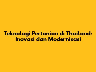 Teknologi Pertanian Di Thailand: Inovasi Dan Modernisasi
