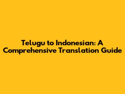 Telugu To Indonesian: A Comprehensive Translation Guide
