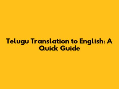 Telugu Translation To English: A Quick Guide