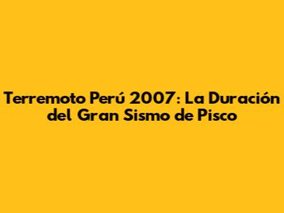 Terremoto Perú 2007: La Duración Del Gran Sismo De Pisco