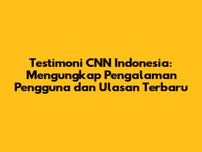 Disclaimer: Artikel ini disusun berdasarkan informasi yang tersedia dan bertujuan untuk memberikan gambaran umum tentang testimoni CNN Indonesia. Pengalaman pengguna dapat bervariasi, dan rekomendasi yang diberikan hanya bersifat umum. Untuk mendapatkan informasi yang lebih spesifik, sebaiknya Anda melakukan riset lebih lanjut dan mempertimbangkan kebutuhan pribadi Anda.