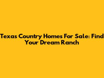 Texas Country Homes For Sale: Find Your Dream Ranch