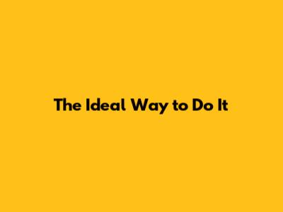 The Ideal Way To Do It