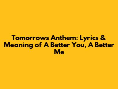 Tomorrow's Anthem: Lyrics & Meaning Of 'A Better You, A Better Me'