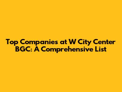 Alright, guys, if you're looking to dive into the bustling business scene of Bonifacio Global City (BGC), specifically around W City Center, you've come to the right place! BGC is a vibrant hub, and W City Center is right in the thick of it. Whether you're job hunting, scouting for partnerships, or just plain curious, knowing which companies call this place home is super valuable. So, let's get down to it and explore a comprehensive list of the top companies you'll find at W City Center BGC.
