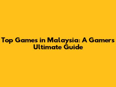 Top Games In Malaysia: A Gamer's Ultimate Guide