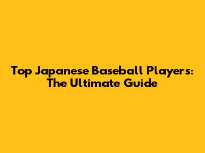 Top Japanese Baseball Players: The Ultimate Guide