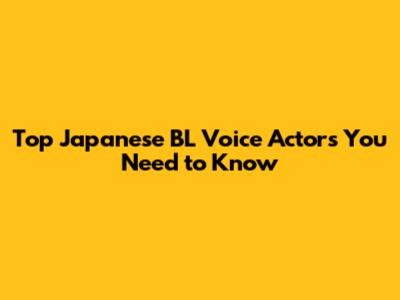 Top Japanese BL Voice Actors