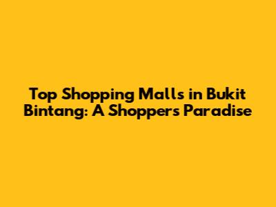 Top Shopping Malls In Bukit Bintang: A Shopper's Paradise
