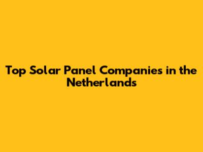 Top Solar Panel Companies In The Netherlands