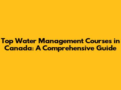 Top Water Management Courses In Canada: A Comprehensive Guide