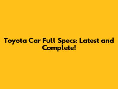 Toyota Car Specs: Full And Latest!