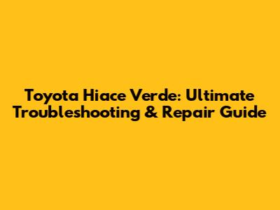 Toyota Hiace Verde: Ultimate Troubleshooting & Repair Guide