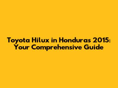 The 2015 Toyota Hilux is a solid choice if you're looking for a reliable and capable truck in Honduras. Just be sure to do your homework, inspect the vehicle carefully, and negotiate a fair price. Good luck with your search, and happy driving!