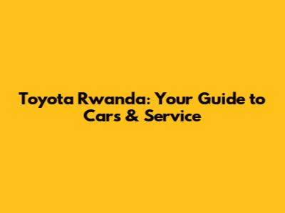 Toyota Rwanda: Your Guide To Cars & Service