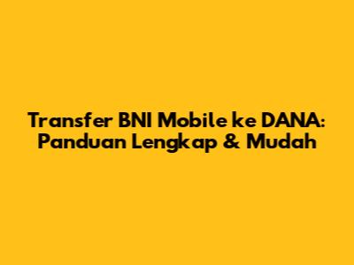 Transfer BNI Mobile Ke DANA: Panduan Lengkap & Mudah