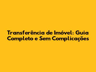 Transferência De Imóvel: Guia Completo E Sem Complicações
