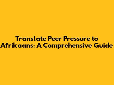 Translate Peer Pressure To Afrikaans: A Helpful Guide