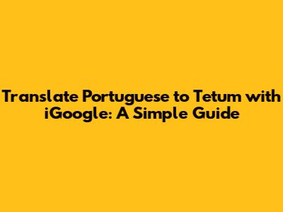 Translate Portuguese To Tetum With IGoogle: A Simple Guide
