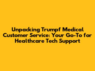 Unpacking Trumpf Medical Customer Service: Your Go-To for Healthcare Tech Support