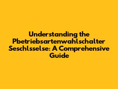 Understanding The Pbetriebsartenwahlschalter Seschlsselse: A Comprehensive Guide