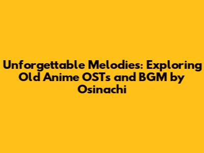 Hey everyone! Ever found yourself completely swept away by the *music *in an anime? I know I have! There's something magical about those tunes, isn't there? Today, we're diving deep into the world of old anime OSTs and BGM, focusing on the incredible work of artists like Osinachi. Get ready for a trip down memory lane, because we're about to rediscover some seriously amazing music that'll bring back all those classic anime feels. Let's get started!