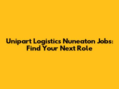 Unipart Logistics Jobs In Nuneaton: Find Your Next Role