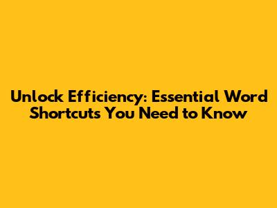 Unlock Efficiency: Essential Word Shortcuts You Need To Know