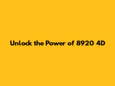 Unlock The Power Of 8920 4D