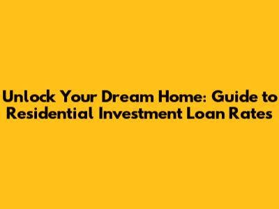 Unlock Your Dream Home: Guide To Residential Investment Loan Rates