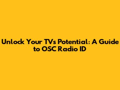 Unlock Your TV's Potential: A Guide To OSC Radio ID