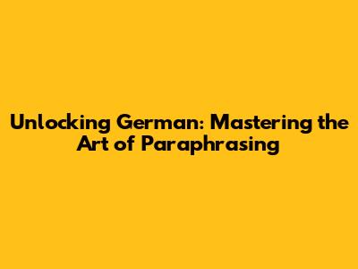 Unlocking German: Mastering The Art Of Paraphrasing
