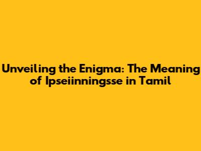 Unlocking The Meaning Of 'Ipseiinningsse' In Tamil