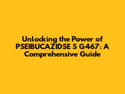 Unlocking The Power Of PSEIBUCAZIDSE S G467: A Comprehensive Guide