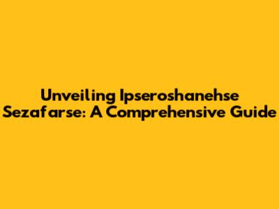 Unlocking The Secrets Of Ipseroshanehse Sezafarse
