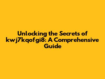 Unlocking The Secrets Of Kwj7kqofgi8: A Comprehensive Guide