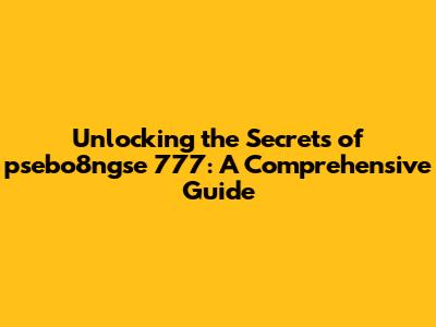 Unlocking The Secrets Of Psebo8ngse 777: A Comprehensive Guide