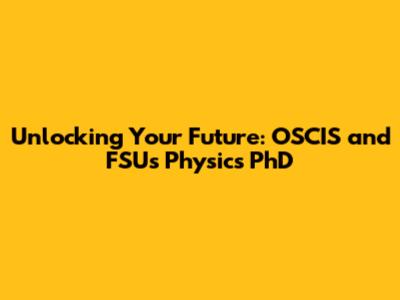 Unlocking Your Future: OSCIS And FSU's Physics PhD