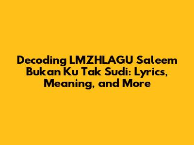 Hey guys! Ever stumbled upon a song that just hits different? You know, the kind that burrows into your brain and stays there? Well, that's how I felt the first time I heard 'LMZHLAGU Saleem Bukan Ku Tak Sudi.' This isn't just a song; it's a journey, a story, a feeling encapsulated in music. So, let's dive deep and unpack everything about this incredible track! We will go through the lyrics, meaning and everything you need to know about the song. Buckle up, buttercups, because we're about to get real.