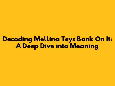 Hey guys! Ever found yourself completely hooked on a song, humming the tune all day, but still scratching your head about what it really means? Well, that's the feeling many of us get when we listen to Mellina Tey's catchy track, 'Bank On It'. This song isn't just a collection of cool beats and a killer voice; it's got layers, and today, we're going to peel them back and explore the heart of what Mellina Tey is telling us. We'll be breaking down the meaning of 'Bank On It', analyzing its themes, and maybe even finding a bit of ourselves in the lyrics.