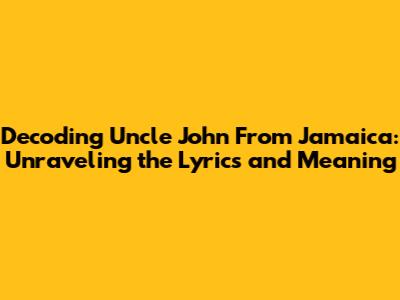 Unpacking The Meaning: 'Uncle John From Jamaica' Song