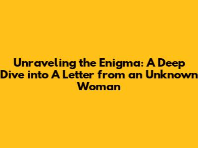 Unraveling The Mystery: A Letter From An Unknown Woman