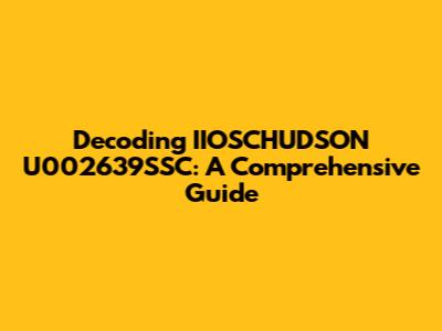 Unraveling The Mystery: IIOSCHUDSON U002639SSC