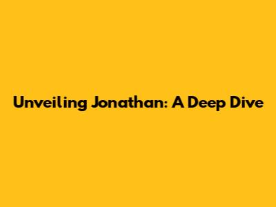 Unveiling Jonathan: A Deep Dive