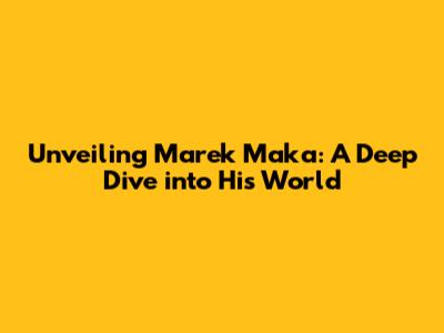 Unveiling Marek Maka: A Deep Dive Into His World