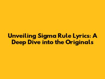 Unveiling Sigma Rule Lyrics: A Deep Dive Into The Originals