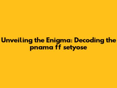 Unveiling The Enigma: Decoding The 'pnama Ff Setyose'