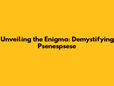 Unveiling The Enigma: Demystifying Psenespsese