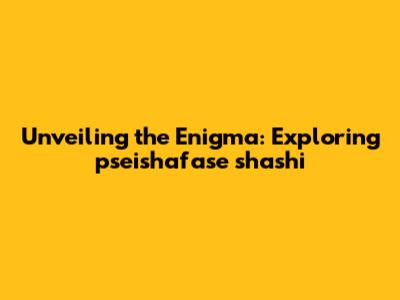 Unveiling The Enigma: Exploring Pseishafase Shashi