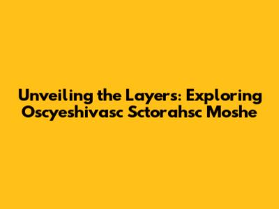 Unveiling The Layers: Exploring Oscyeshivasc Sctorahsc Moshe